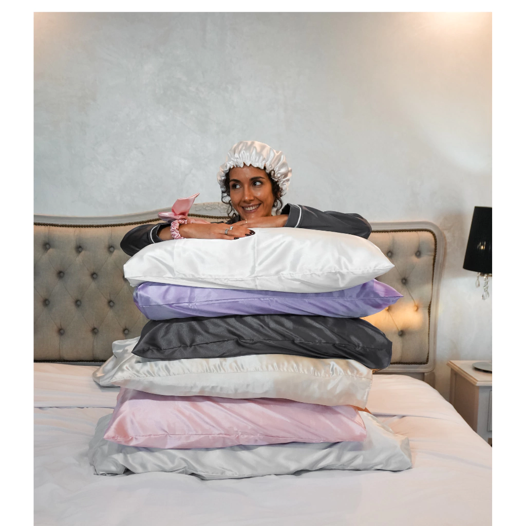Invertí menos tiempo arreglandote por la mañana. Tus fundas de satén reducen los enredos y conservan las forma de tu pelo mientras dormis.
