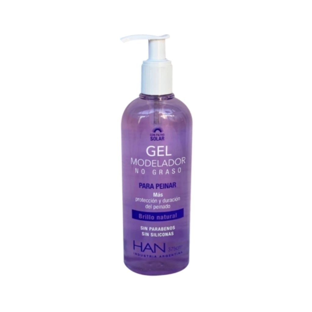 Gel Han Modelador No Graso, es un finalizador apto para el Método Curly Girl, pensado para definir rulos y ondas con una fijación media, sin dejar el pelo pesado ni acartonado. Ayuda a controlar el frizz, sellar la hidratación y mantener el peinado por más tiempo. Aporta brillo natural y contiene filtro UV, ideal para proteger tu melena del sol.